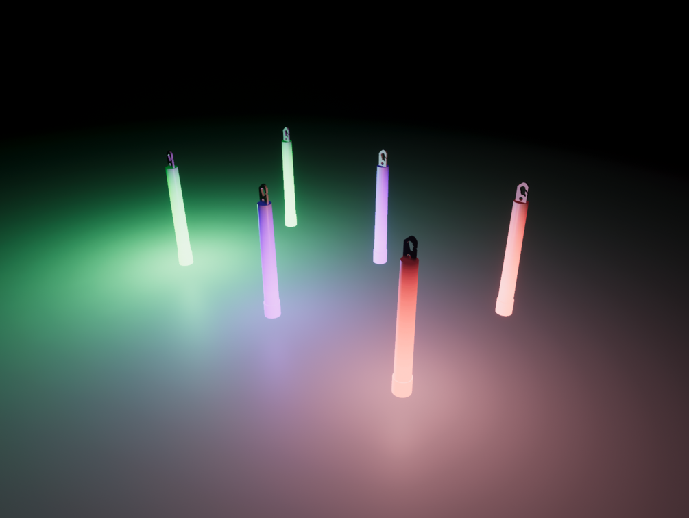 GlowStick / Chemlight Props that can be baked or real-time within unity. Great for clubs, adventure maps, hand props, etc.